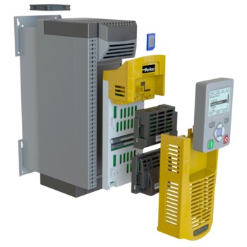 The AC30 variable speed drive range has been designed to provide users with exceptional levels of control, from simple open-loop pumps and fans through to closed-loop process line applications. Its flexible and highly modular construction enables a wide range of communications and I/O modules to be easily added as required. The AC30 has been designed with simplicity in mind, but this doesn’t compromise its functionality. Integrated macros for a range of applications and PLC functionality enable more capable users to create sophisticated control that would previously have required a separate PLC. Designed for operation in environment class 3C3 and 3C4 for Hydrogen Sulphide (H2S) as standard (tested at 25 ppm for 1200 hours), temperatures up to 50 °C with optional integrated EMC filter to C2 1st environment and DC link choke to reduce line harmonics. AC30 also complies with RoHS substance restrictions in accordance with EC Directive 2011/65/EU. Note: AC30 power stacks and interchangeable control modules are available as separate componenets, offering advanced levels of automation control and greater design flexibility – see the “AC30 Series [Power Modules]” and “AC30 Series [Control Modules]” pages in the recommended products section for more details.